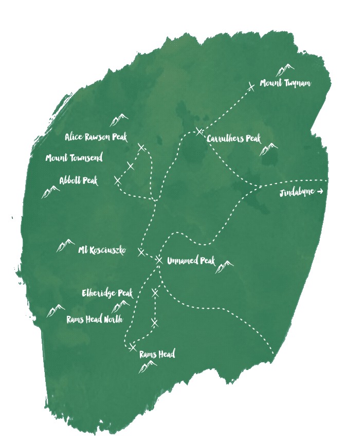 The trip begins in Canberra before heading to Charlotte Pass and hiking into Seaman’s Hut, where we establish a base camp for three nights. From there, we tackle the range in two big days. Six peaks on day two, followed by the final four peaks on day three, finishing on Mount Kosciuszko at 2,228m.